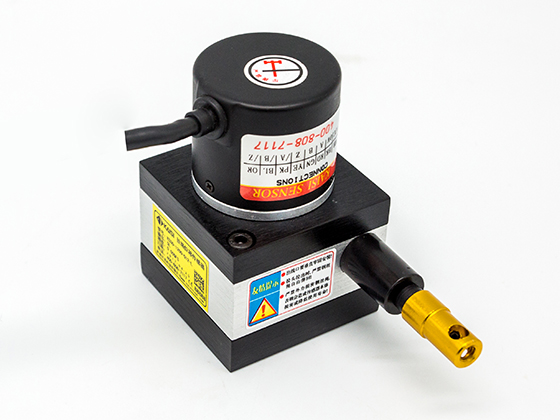 操作上,拉绳式位移传感器安装在固定位置上,拉绳缚在移动物体上。拉绳直线运动和移动物体运动轴线对准。运动发生时,拉绳伸展和收缩。一个内部弹簧保证拉绳的张紧度不变。带螺纹的轮毂带动精密旋转感应器旋转,输出一个与拉绳移动距离成比例的电信号。测量输出信号可以得出运动物体的位移、方向或速率。